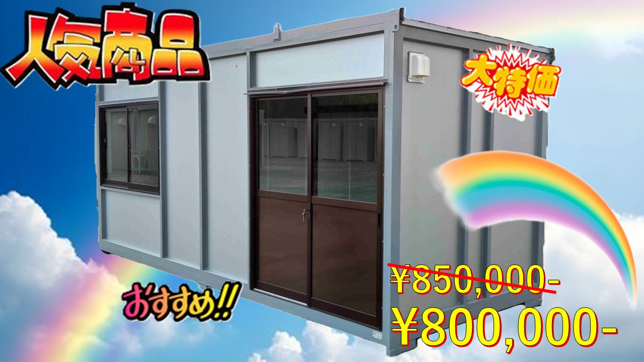 新棟4坪ハウスの入荷です! 室内はLEDライト、コンセント、換気扇などの電気設備が標準装備! 設置後、電気を引き込めばすぐに使用可能です。 事務所や店舗を探している方にオススメ!!